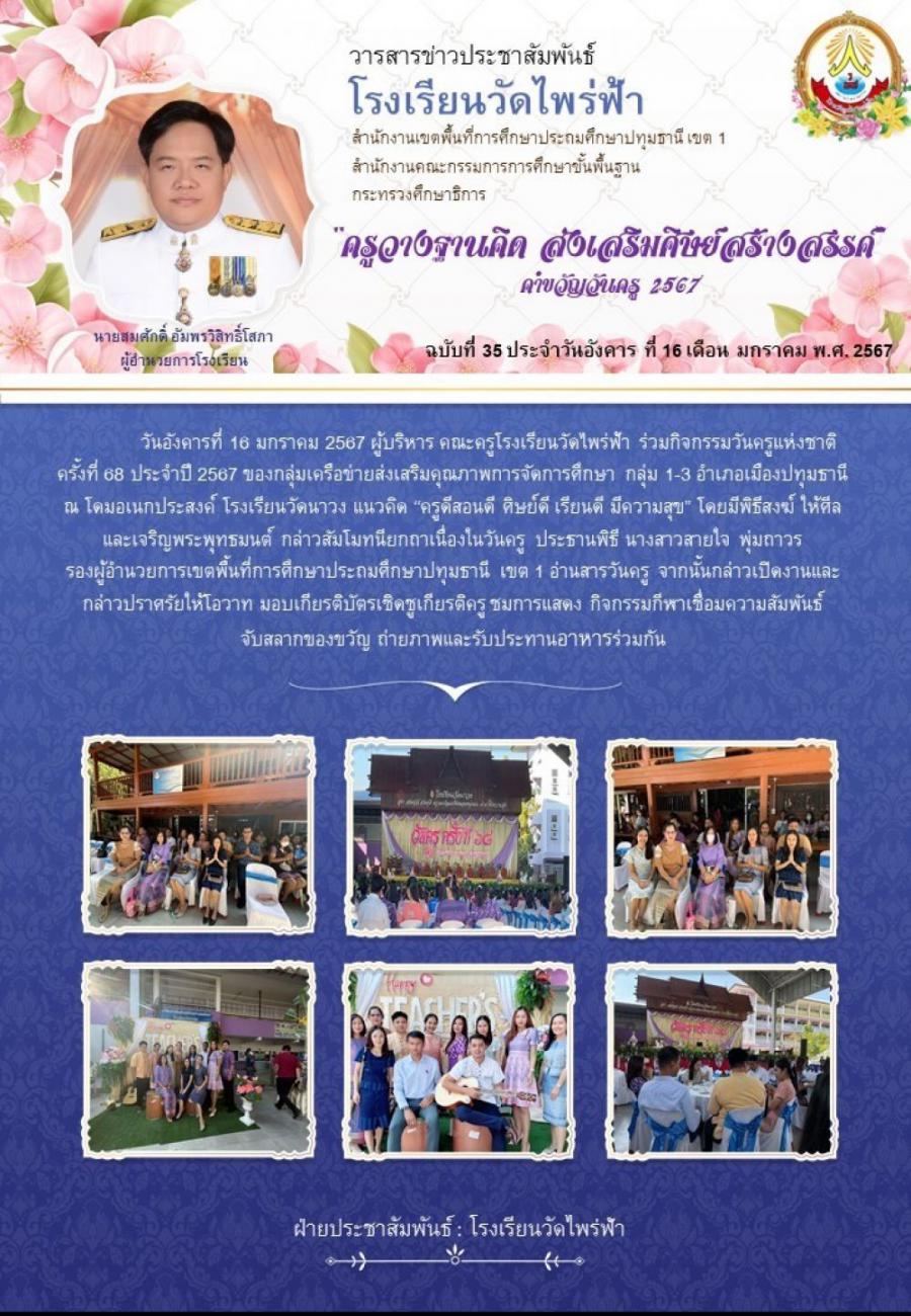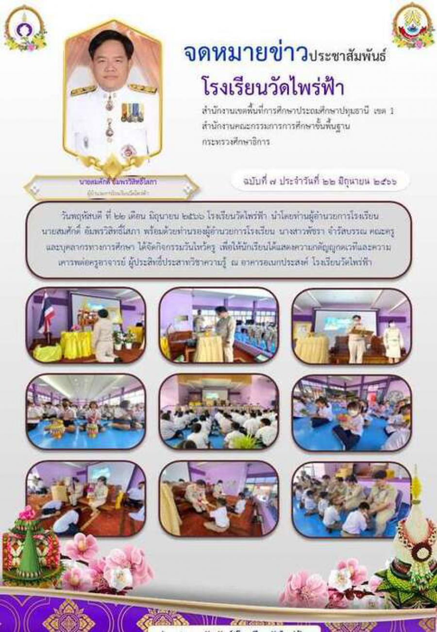 วารสารประชาสัมพันธ์ กิจกรรมนักเรัยนและครูโรงเรียนวัดไพร่ฟ้า ประจำปีการศึกษา 2566 S:0