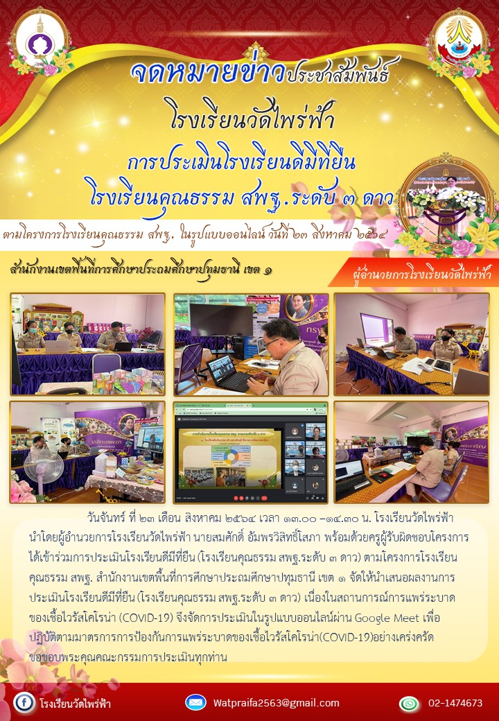 การประเมินโรงเรียนคุณธรรม ระดับ ๓ ดาว