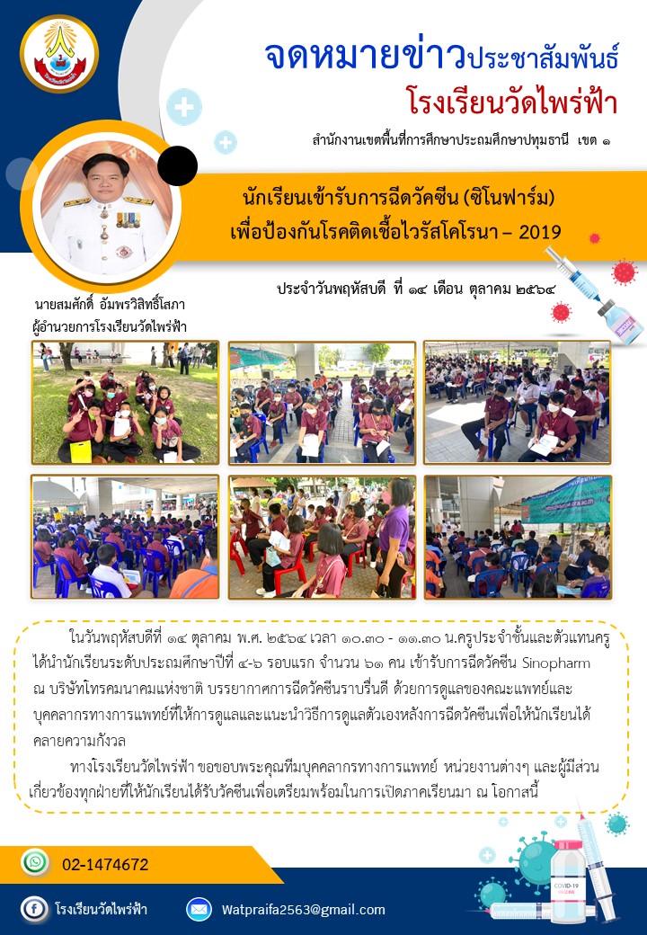 นักเรียนเข้ารับการฉีดวัคซีน(รอบแรก)