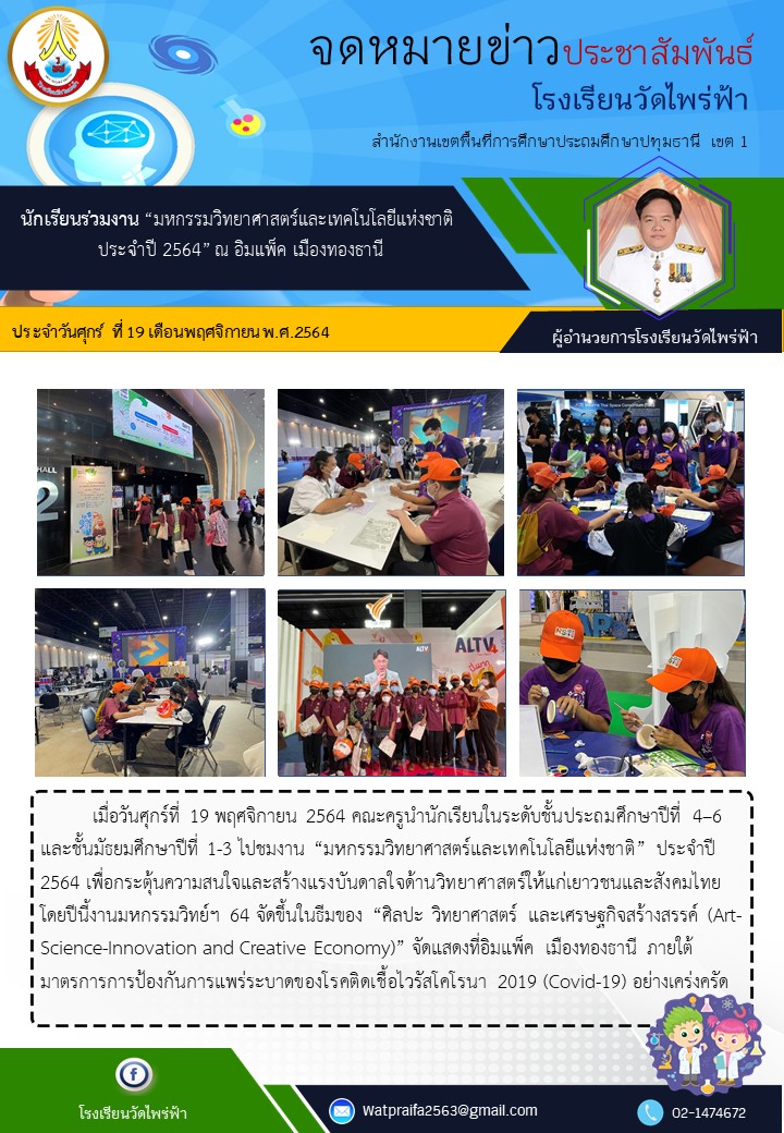 นักเรียนร่วมงาน มหกรรมวิทยาศาสตร์และเทคโนโลยีแห่งชาติ ประจำปี 2564 ณ อิมแพ็ค เมืองทองธานี