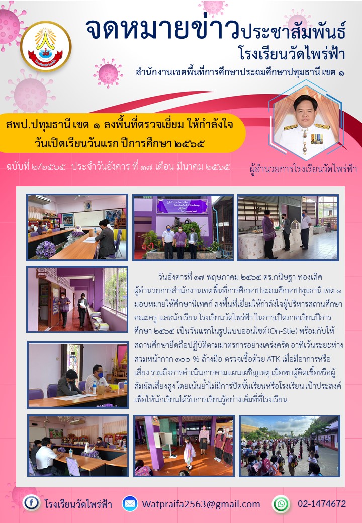 สพป.ปทุมธานี เขต 1 ลงพื้นที่การเปิดภาคเรียน ประจำปีการศึกษา 2565