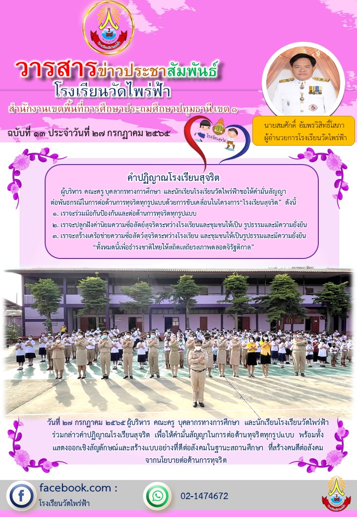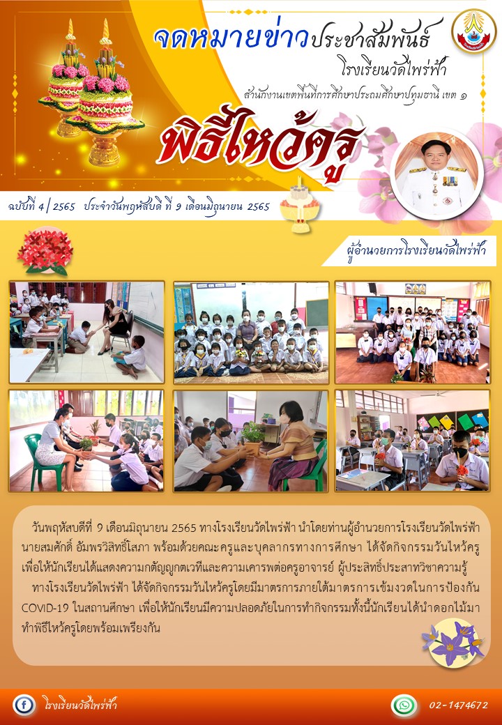 ๖) ธรรมเนียมปฏิบัติของบุคลากรโรงเรียนวัดไพร่ฟ้า