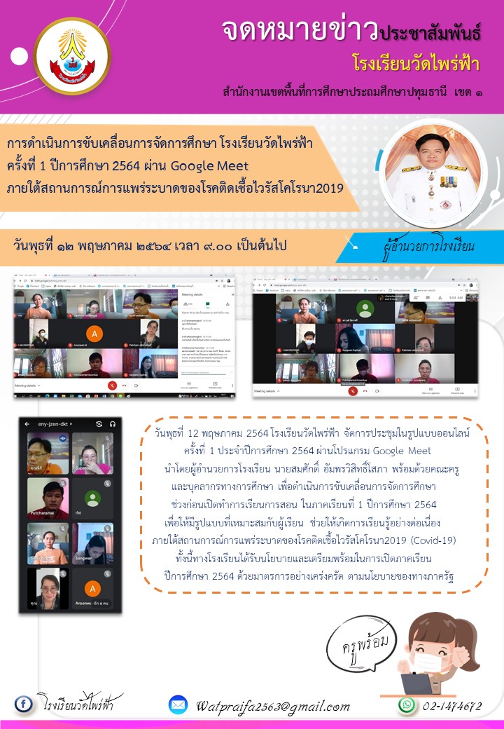 การประชุมครูในรูปแบบออนไลน์ ครั้งที่ 1 /2564