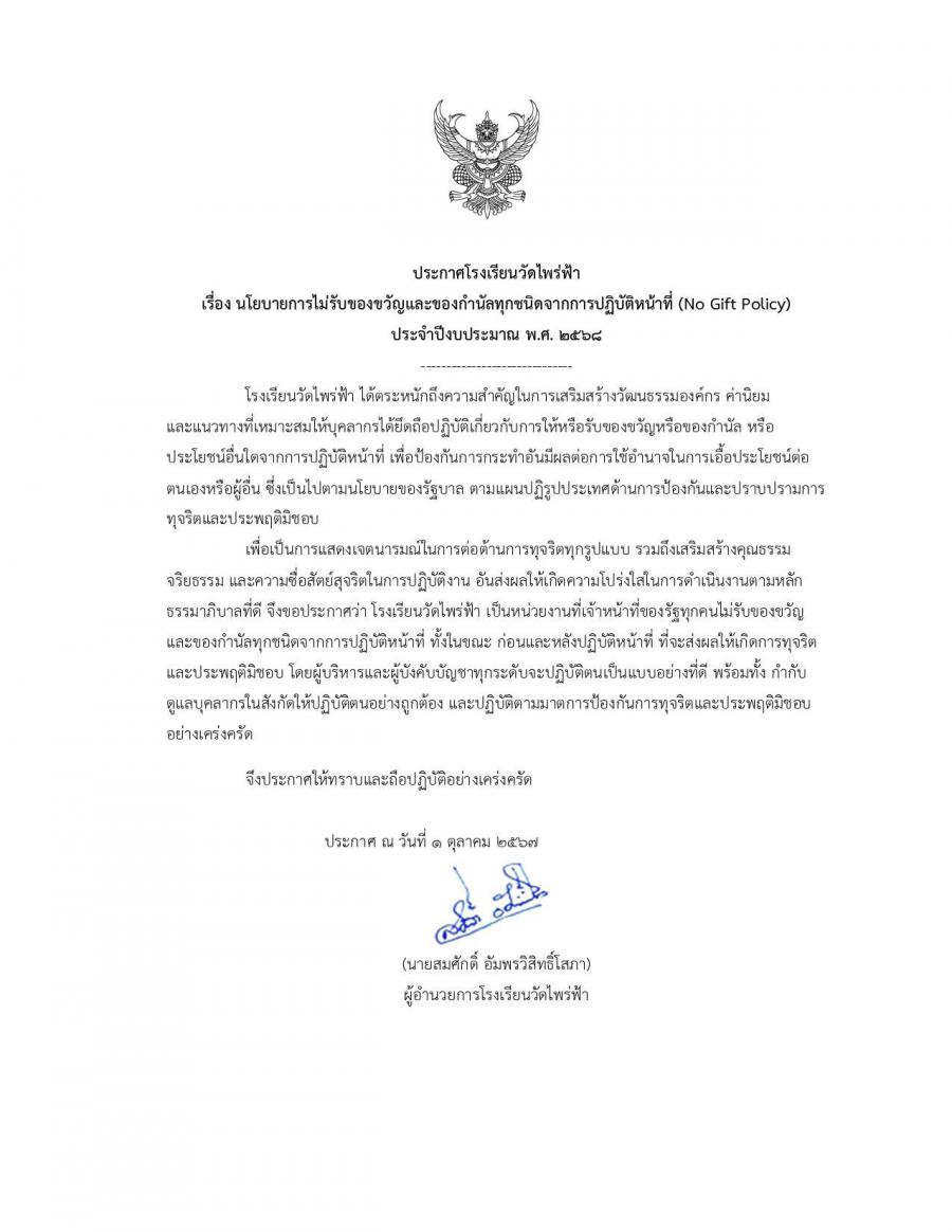 ประกาศ no gilf policy ฉบับภาษาไทย
